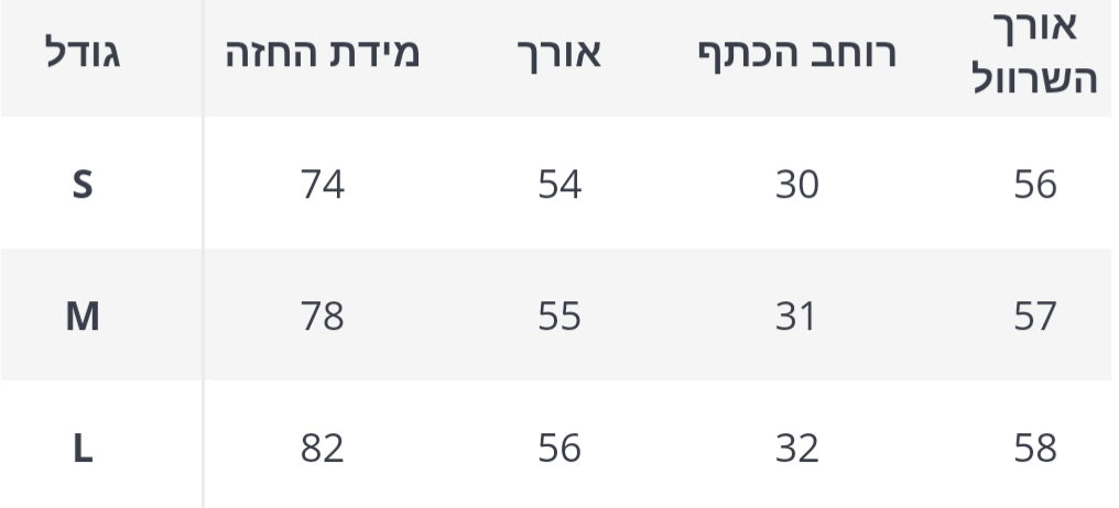 טבלת מידות