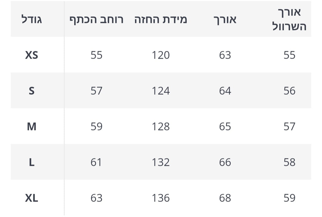 טבלת מידות
