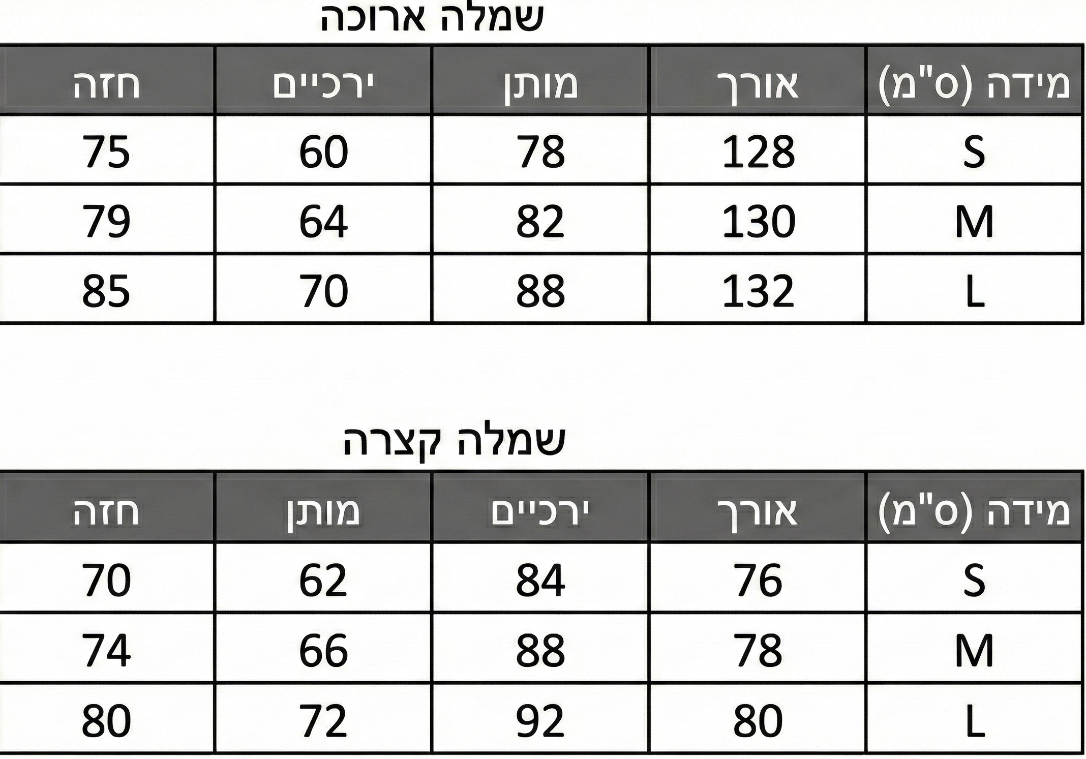 טבלת מידות