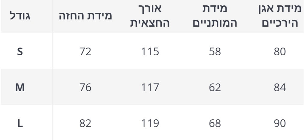 טבלת מידות