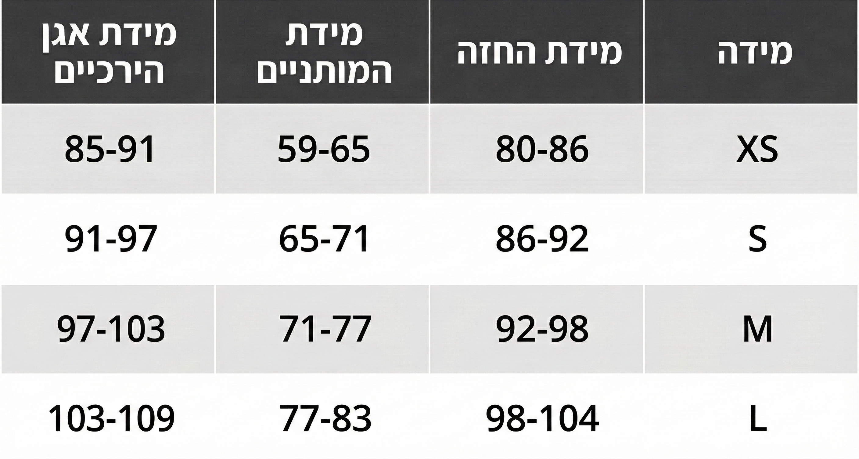 טבלת מידות