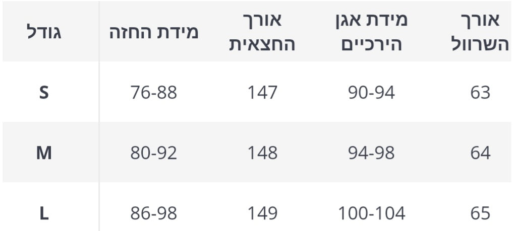 טבלת מידות
