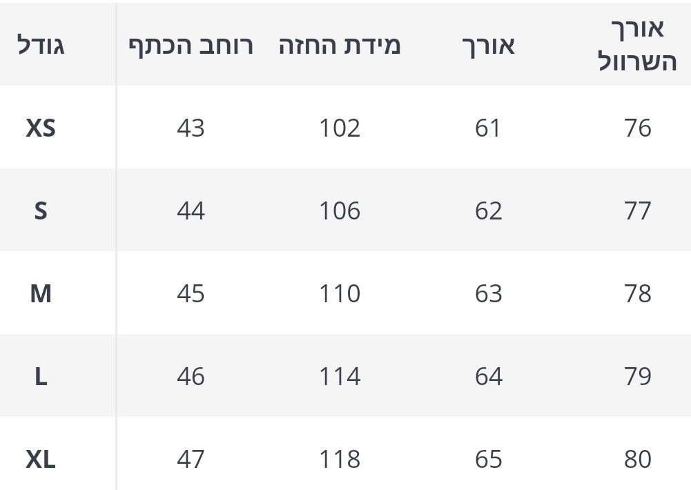 הפריט יוחזר כשהוא באריזתו המקורית, סגור, נקי וללא כל סימני שימוש או בלאי, ובלבד שלא נעשה בו שימוש מעבר למדידה .